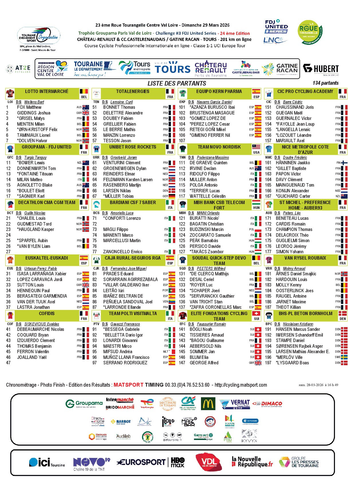 Les équipes au départ de la Roue Tourangelle 2026